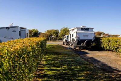 Perfect for larger vehicles, these big rig drive-through powered sites offer a level surface and easy access for hassle-free setup. Pets are welcome, and you'll enjoy proximity to communal amenities including bathrooms and BBQ facilities.